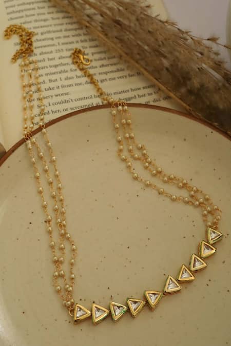 Triangular kundan motifs, Multi-layer chains with pearls, Adjustable design