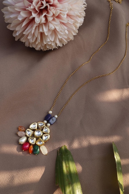 Multi Color Kundan And Stone Embellished Pendant Necklace