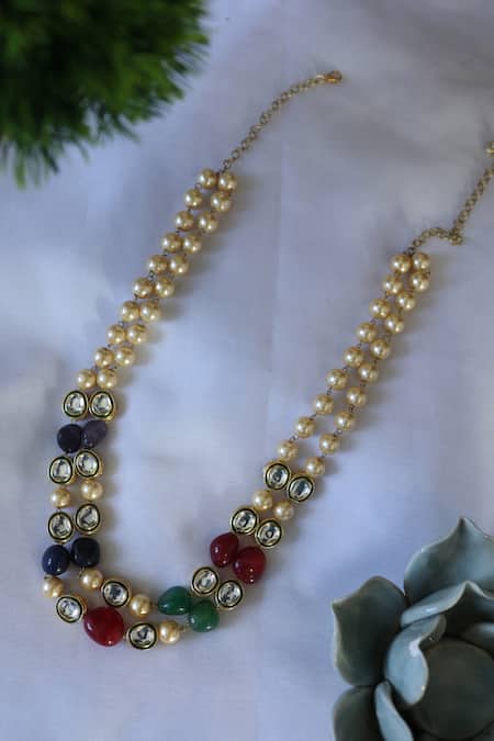 Multi Color Kundan Bead Embellished Pearl Necklace