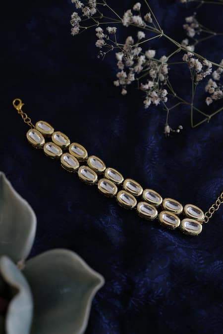Gold plated bracelet featuring kundan stones set in a silver alloy base