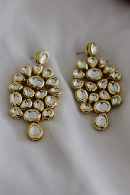 Gold Plated Diamonds, Stones Kundan Embellished Floral Pattern Earrings
