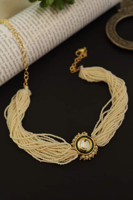 Green kundan center motif, Multi-chain pearl design, 22kt gold plating