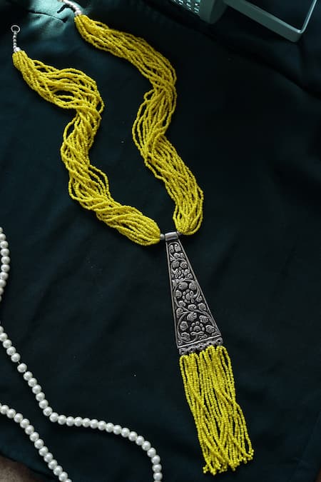 Yellow Layered Beads Embellished Long Necklace