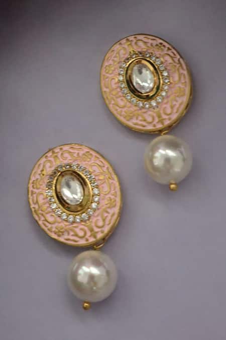 Pink meenakari embellished drop earrings featuring a spherical floral design