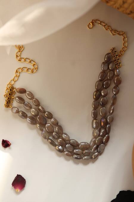 Multiple strands of grey moonstone, Lobster clasp for secure closure, 22k gold plating