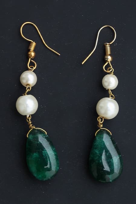 Green Pearls, Stones Natural And Embellished Drop Earrings