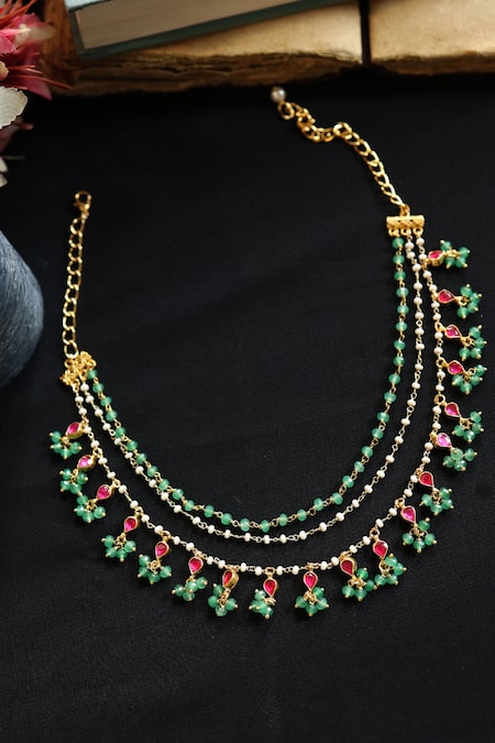 Multiple layers of pearls and gemstones, Lobster hook closure for secure fit, Intricate kundan detailing with vibrant colors