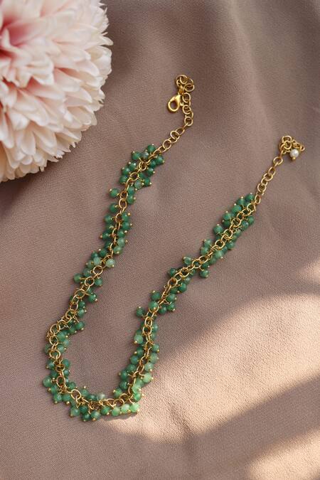 22k gold plated silver alloy necklace with strings green onyz beads.