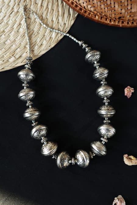 Buy_Do Taara_Silver Plated Patina Carved Necklace _Online_at_Aza_Fashions