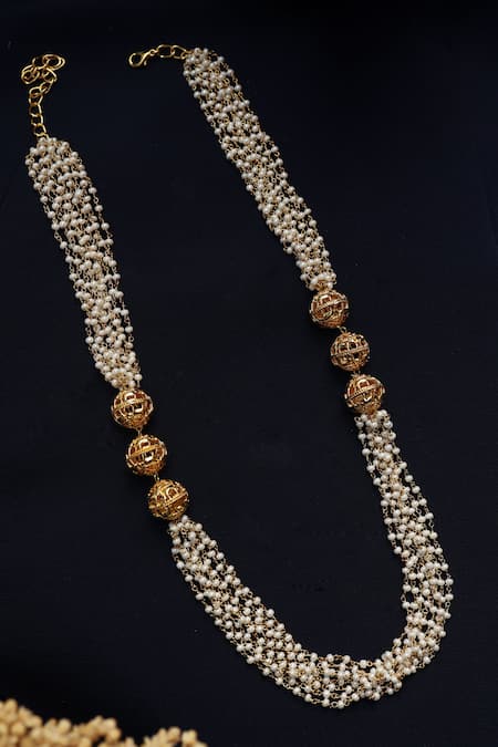 Embossed gold balls, Multiple pearl strands, Lobster clasp for secure closure