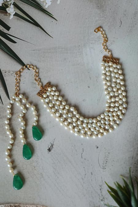 White Pearl Embellished Multistrand Choker Necklace