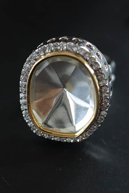 Silver Plated Crystals, Diamonds Polki Studded Ring