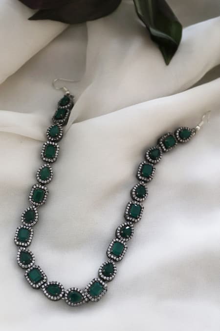 Adjustable design with a hook closure, Green faux diamond embellishments, Cubic zirconia detailing