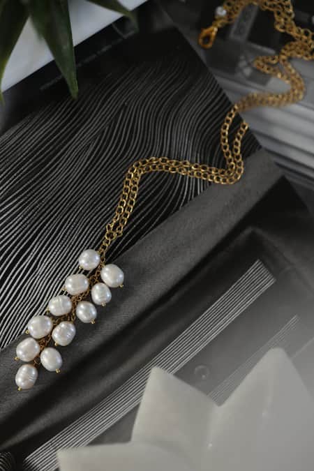 Gold Plated Shell Pearls Embellished Long Necklace
