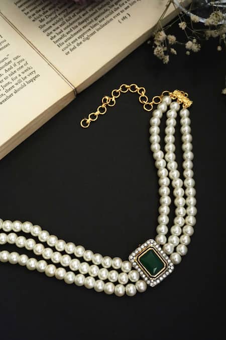 Multi-chain design with pearl strands, Cubic zirconia surrounding the stone, Lobster hook closure for secure fit