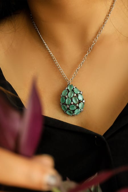 Encrusted with turquoise stones and cubic zirconia, Tear drop pendant motif, Lobster clasp closure
