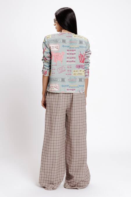 Grey Rayon Pearls, Lace Round Neck Bantai Print Tweed Jacket