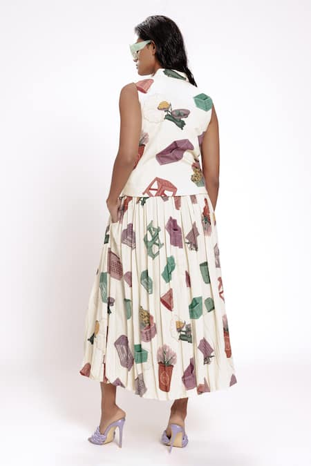 Ivory Rayon Mandarin Collar Flower Market Printed Vest Top