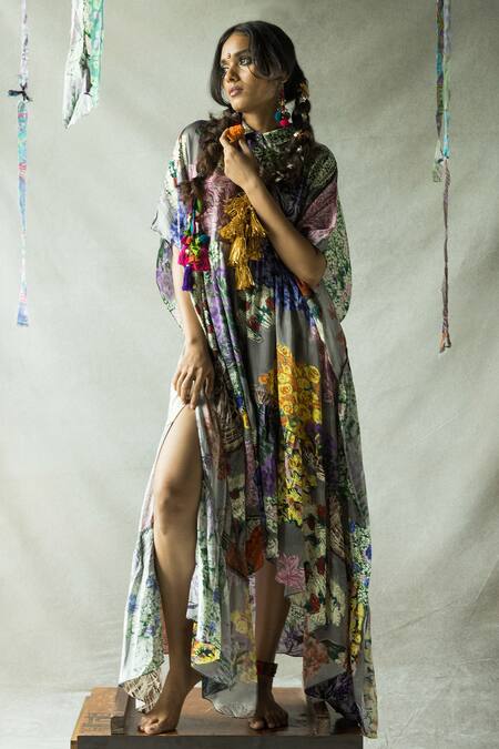 Grey Collared Gajra Re A-line Asymmetric Kaftan Dress