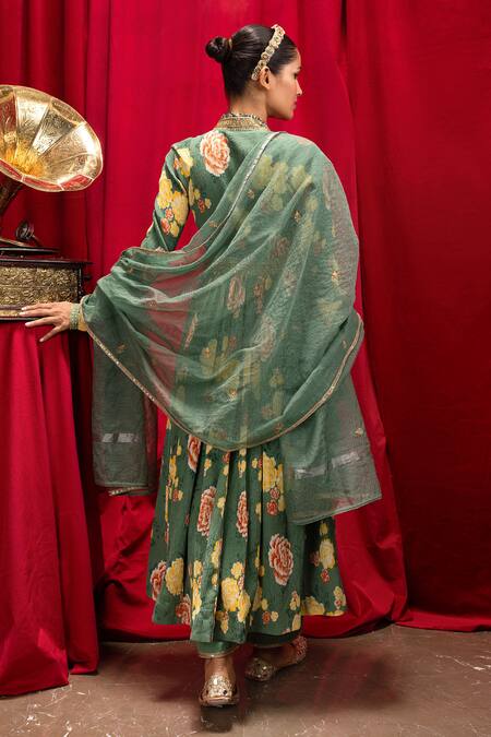 Green Cotton, Silk Gota Patti, Madhubala Floral Print Anarkali Palazzo Set