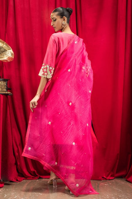 Pink Silk, Cotton, Organza, Chanderi Sequins, Rani Placement Kurta Set