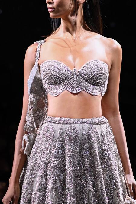 Ivory Tulle, Silk Pearls, Crystals, Beads Pandora Embroidered Lehenga Set