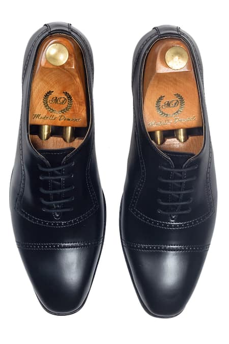 Black handcrafted oxford shoes with brogues details, front lace-ups, padded lining & rubber sole.