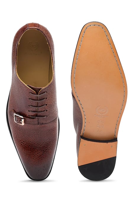 Buy_Domani_Brown Plain Textured Monksford Shoes _Online_at_Aza_Fashions