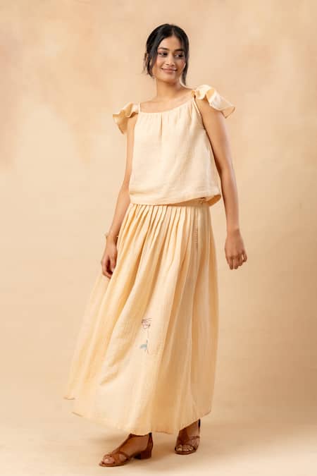 Beige Cotton Embroidery Organic Skirt