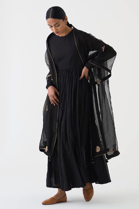 Black Organza Sequins Leila Bullian Leaf Embroidered Dupatta
