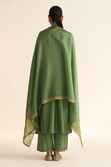 Green Chanderi Diamonds Mridini Zari Border Dupatta