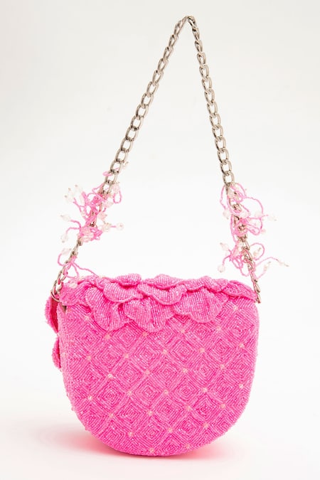 Buy_Doux Amour_Pink Embellished 3d Floral Bag _at_Aza_Fashions