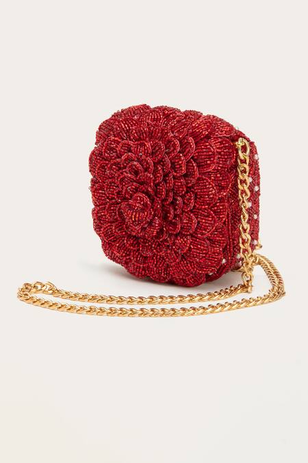 Buy_Doux Amour_Red Beads, Embroidery Coco Crystal Embellished Airpod Bag _Online_at_Aza_Fashions