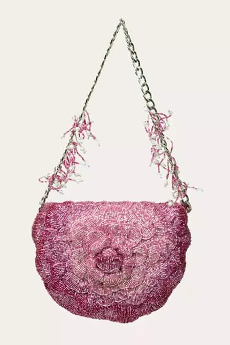 Pink Embroidery, Beads Coco Rose Embellished Mini Sling Bag