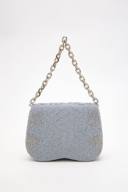 Grey Beads Medusa Mini Hand Embroidered Bag