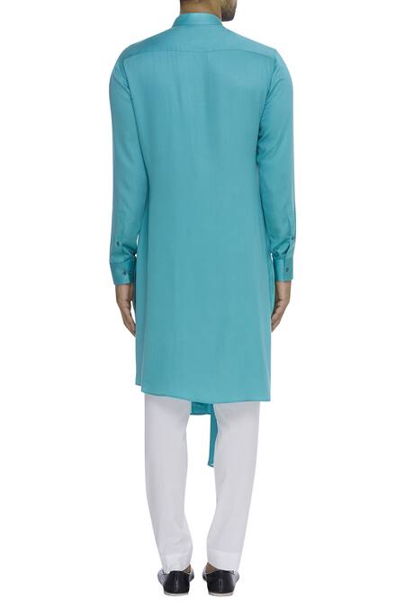 Shop_Dhruv Vaish_Blue Draped Asymmetric Kurta_Online_at_Aza_Fashions
