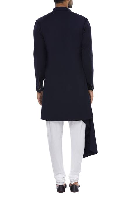Look like an ethnic fashion zenith in this navy blue overlap draped kurta. The side drape adds an edge.