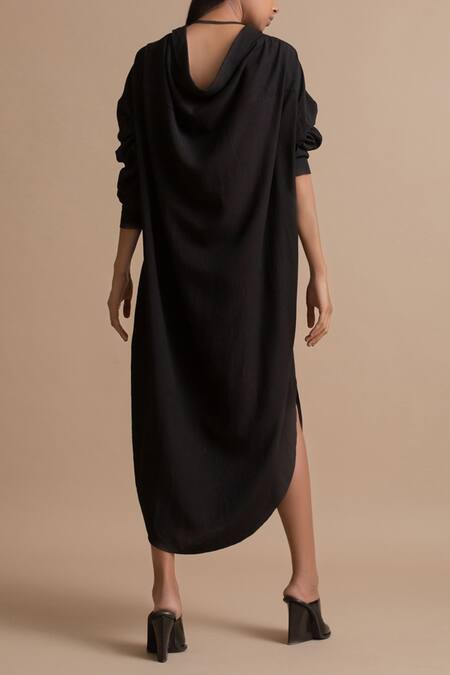 Buy_Kanelle_Black Cotton Slub Draped Shirt Dress_Online_at_Aza_Fashions