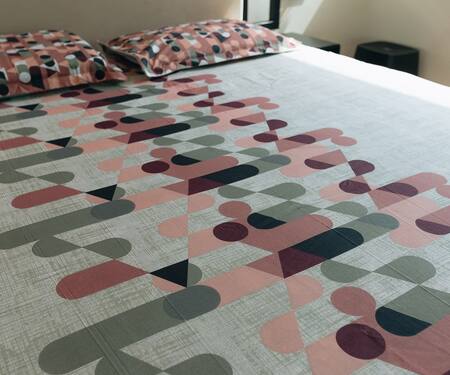 Multicolor cotton bedsheet with geometric print in the centre. Comes with two rectangular-shaped pillow covers.