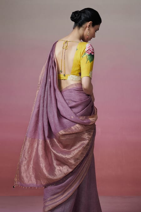 Purple Linen Zari Handwoven Saree With Running Blouse