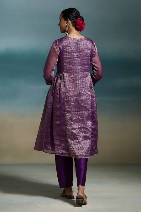 Purple Chanderi Zari V-neck Chahak Anarkali Set