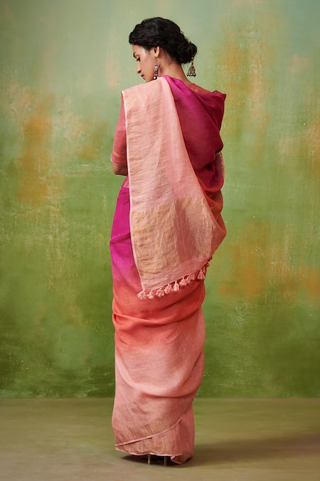 Buy_Dressfolk_Multi Color 100% Handloom Linen Chhavi Ombre Saree With Running Blouse _Online_at_Aza_Fashions