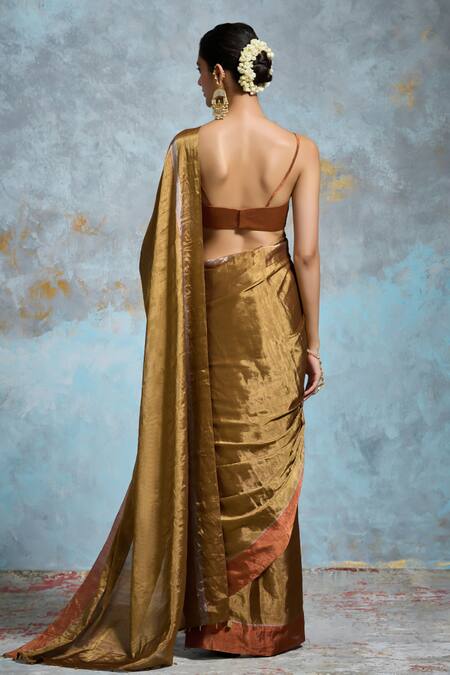 Gold Chanderi, Handloom Cotton Metallic Thread, Beads Saree With Running Blouse