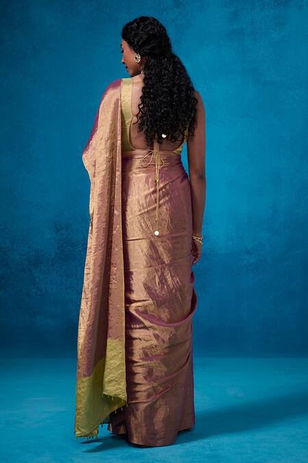 Buy_Dressfolk_Maroon Handloom Cotton Handwoven Tissue Saree With Running Blouse