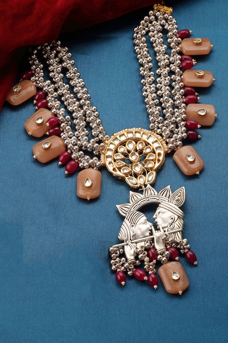 Adjustable dori with beaded tassels, Floral cutwork design, Carved tribal figurine pendant