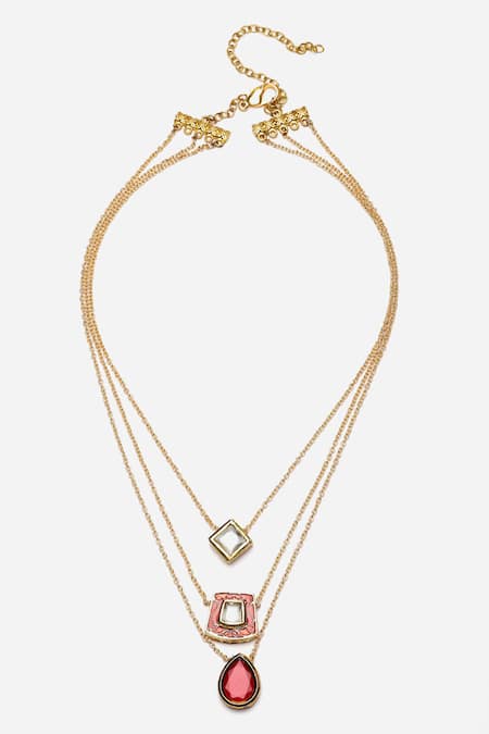 Multi Color Geometric Carved Kundan Embellished Necklace