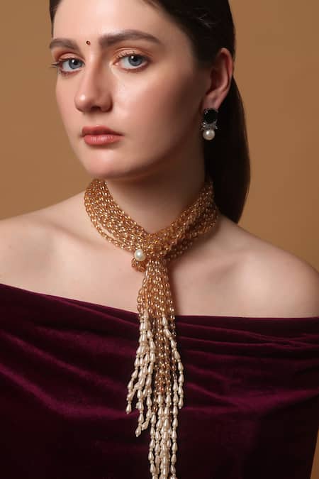 Buy_Dugran By Dugristyle_Peach Gold-plated Pearl Strand Necklace _Online_at_Aza_Fashions