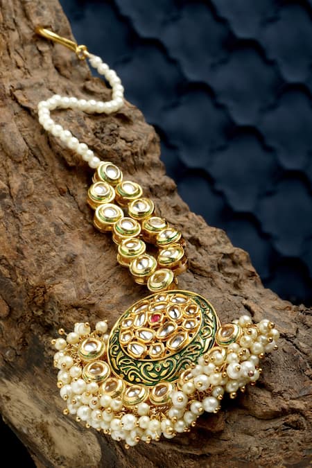 Multi Color Kundan And Pearl Embellished Maangtikka