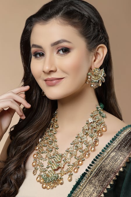 Floral shape kundan embellishment, Clustered pearl drops, Bead drops