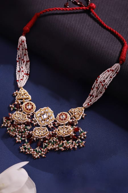 Kundan and pearl embellishments, Natural stones detailing, Faux ruby and emerald accents